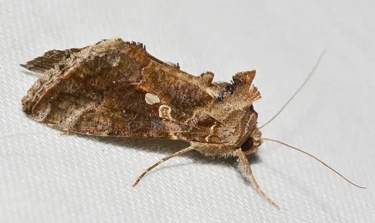 Soybean looper (Chrysodeixis includens) moth on a leaf