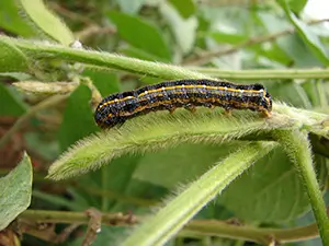 Several species of lepidopteran caterpillars feed on soybean leaves, including the soybean caterpillar, Anticarsia gemmatalis. Considering its abundance and frequent occurrence in soybean-cultivated regions of the country, it is deemed the most significant pest.