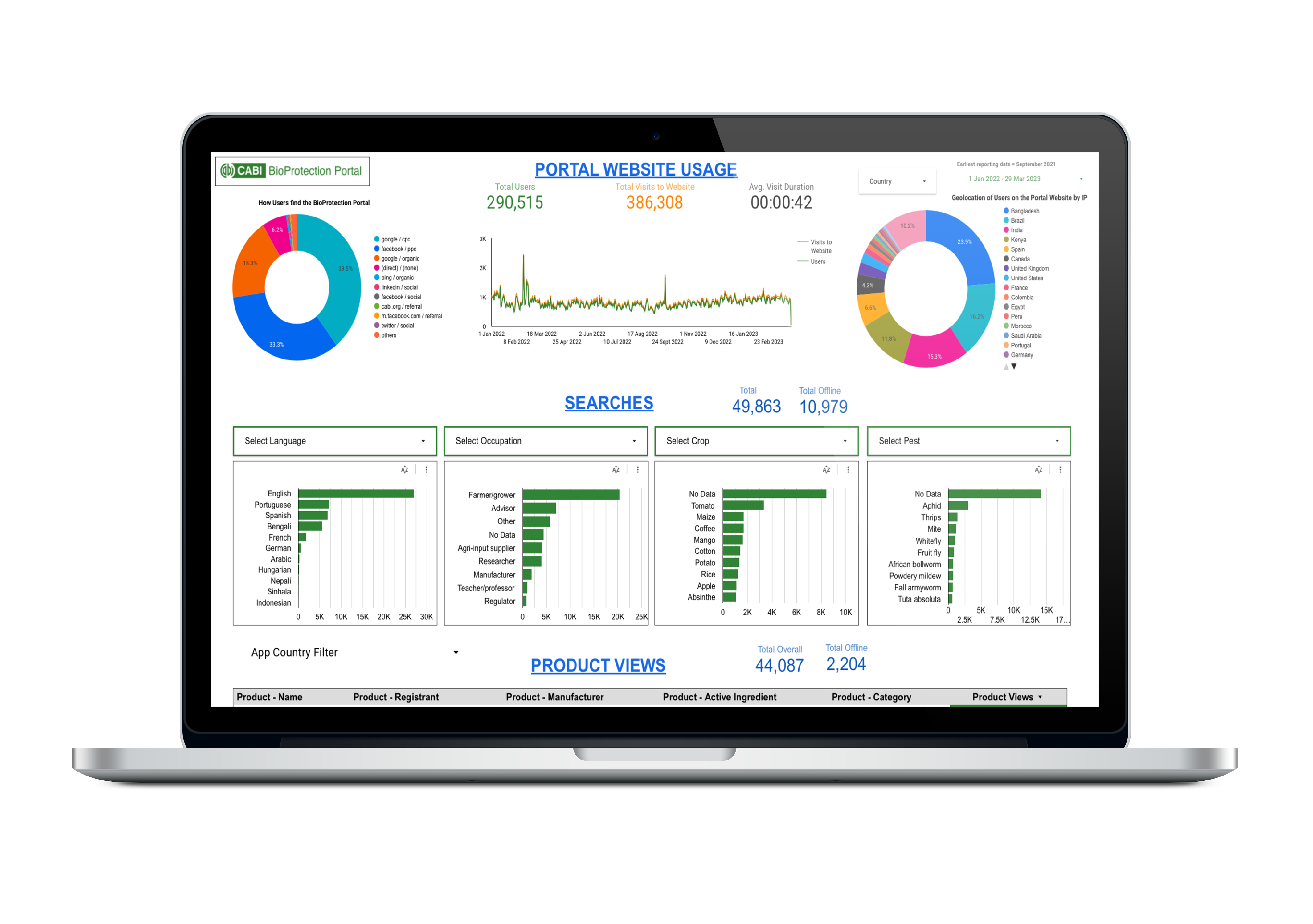 Partners receive not only basic Portal analytics but also comprehensive insights into how their products are performing. You’ll have access to detailed analytics about which of your products are the most searched for, user demographics, and crop-pest search data. Bespoke online dashboards provide these insights, allowing you to tailor your marketing and sales strategies effectively throughout the duration of your partnership.